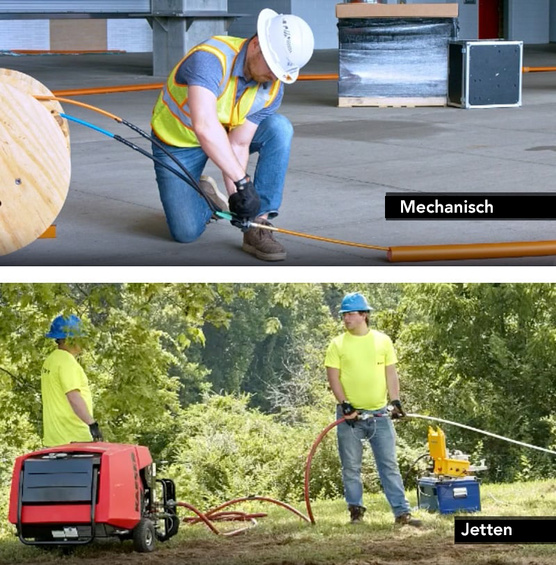 - Mechanisches Einbringen: Mit einer Winde oder einem Stab werden die Mikrorohre eingezogen.