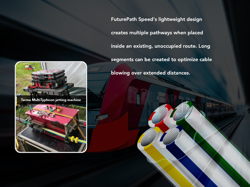 FuturePath Speed 4-way 10/8 mm, a compact, streamlined MicroDuct bundle capable of being jetted over long distances between existing access chambers.