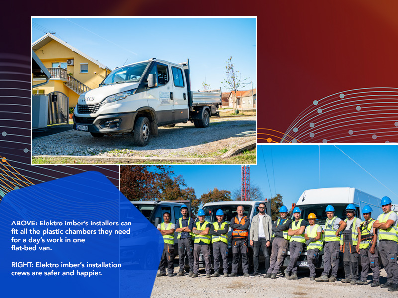 For someone in Bakota’s position, the last and most critical consideration is safety. Elektro imber proudly employs its own installers and the crew on this project had been dispatched over 250 km from their homes in the Croatian capital, Zagreb. “They are our people and we’re responsible for their health and safety,” Bakota says. “Before, when we used concrete chambers, installation was slow and the risk of injury was high. But now, installations are faster, our people are safer, and they are happier too.”