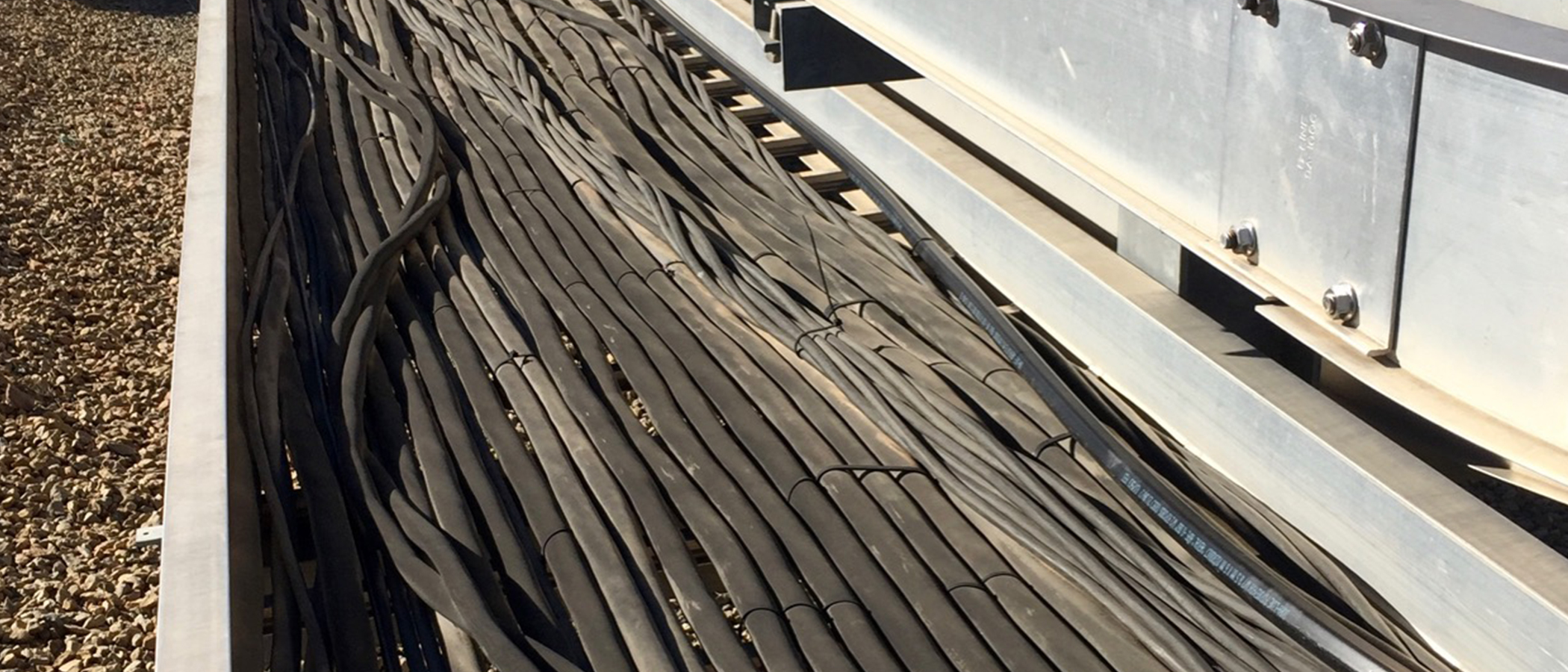 In facilities having a sizable IT cable infrastructure, such as a data center or large commercial facility, solid bottom and wire trays are often used. Since most trays are intended for multi-media use – sharing the same space with CAT cables, optical and copper telco cables – when installing HDPE ducts or MicroDucts, care must be taken to not cross-over any of the existing media. When transitioning in or out of the tray, it is best to route the duct products from the underside of the tray, if possible.
