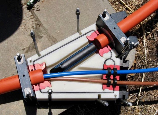 Dans les situations où généralement un conduit en PEHD de 2” et plus petit contenant un seul câble de fibre optique est impliqué, un ou plusieurs MicroDucts de taille appropriée peuvent être insérés par jet d’air dans le conduit occupé à l’aide d’un adaptateur pour bloc en Y spécial afin d’isoler et de sceller le câble de courant dans le canal. Ensuite, le ou les MicroDucts supplémentaires peuvent être placés dans le conduit en utilisant de l’air comprimé et un équipement de jet d’air de type tracteur équipé de courroies à rainures multiples pour installer plusieurs MicroDuct. Lors de l’installation simultanée de plusieurs MicroDucts, il est important que leurs extrémités soient libres et non jointes ou connectées entre elles.